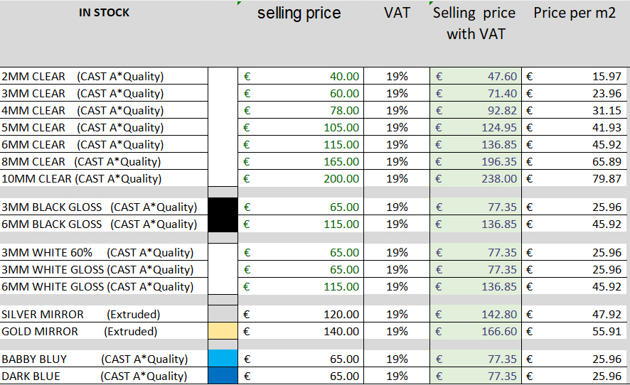*We supply high-quality cast acrylic (plexiglass) sheets in standard sizes of 1220 x 2440 mm, perfect for sign makers, fabricators, and creative professionals. Our sheets offer excellent clarity, durability, and versatility—ideal for signage, displays, protective barriers, and custom fabrication projects. Whether you’re cutting, engraving, or forming, our premium acrylic delivers precise results and a polished finish every time.